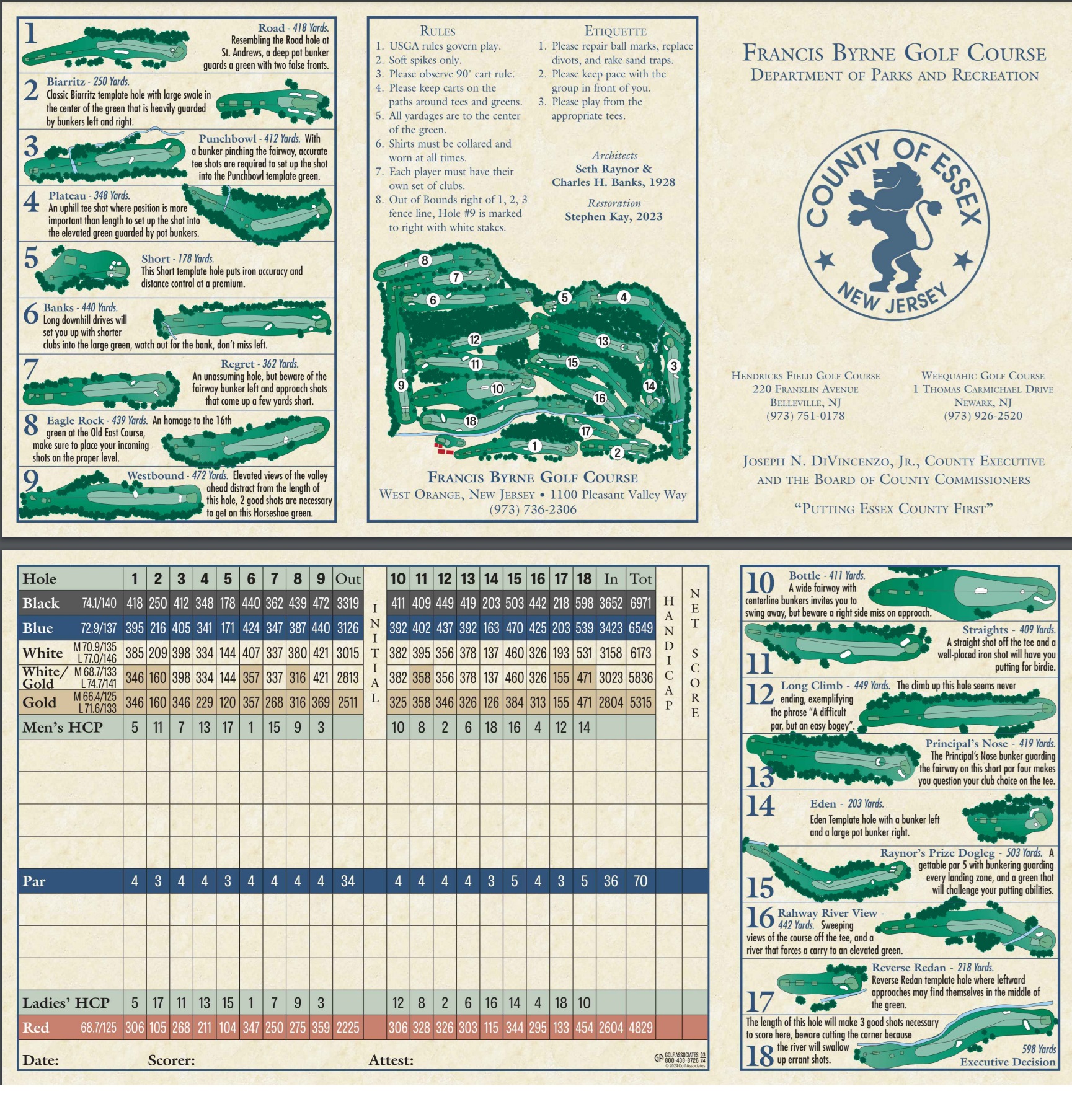 Essex County’s Francis Byrne Golf Course dates back to 1928, when it was designed as a private country club course by noted golf architect Seth Raynor, and constructed by Charles Banks after Raynors untimely passing. Through our renovation project, many of the course features have been restored by Stephen Kay to their classic roots, making Byrne one of the premiere public golf destinations in the state.