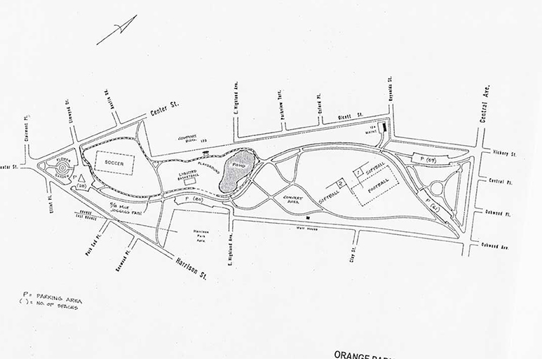 Orange Park, considered to be part of the original county park system designed by the Olmsted Brothers, is a beautiful 47.63-acre park situated between Central Avenue and Center and Harrison Streets in the City of Orange. It's the park system's sixth largest park.